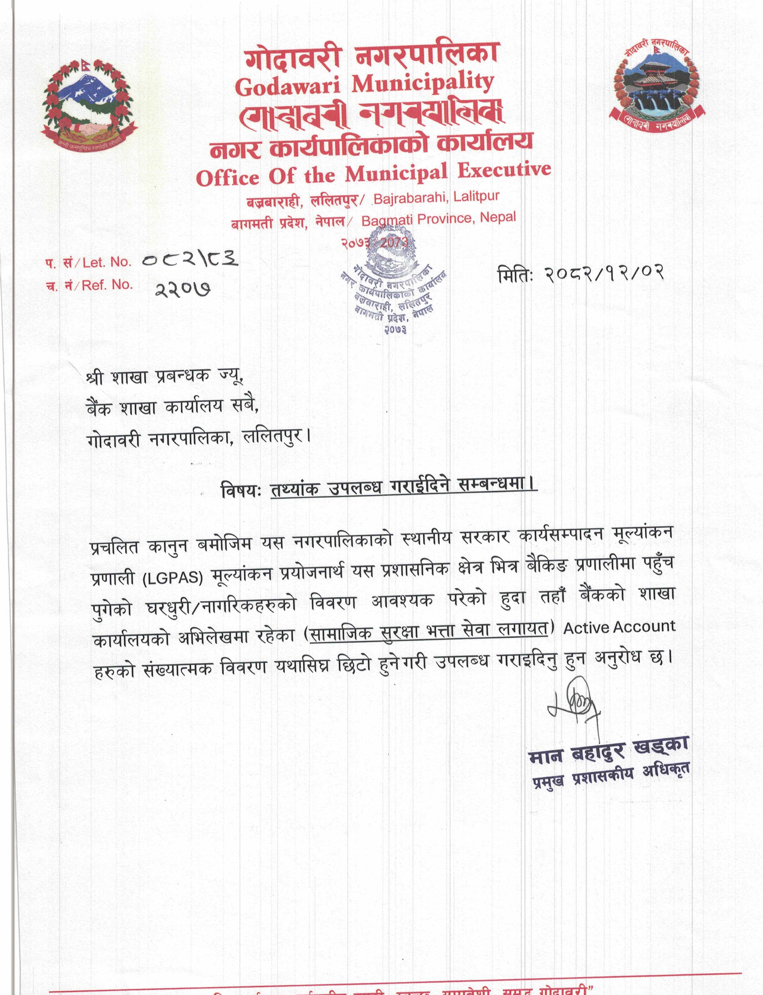 तथ्यांक उपलब्ध गराईदिने सम्बन्धमा।