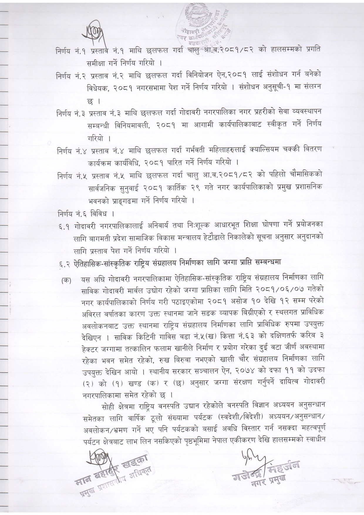मिति २०८१/१२/११ गतेको कार्यपालिका बैठक निर्णय
