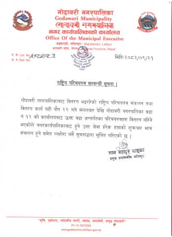 राष्ट्रिय परिचयपत्र सम्बन्धी सूचना।