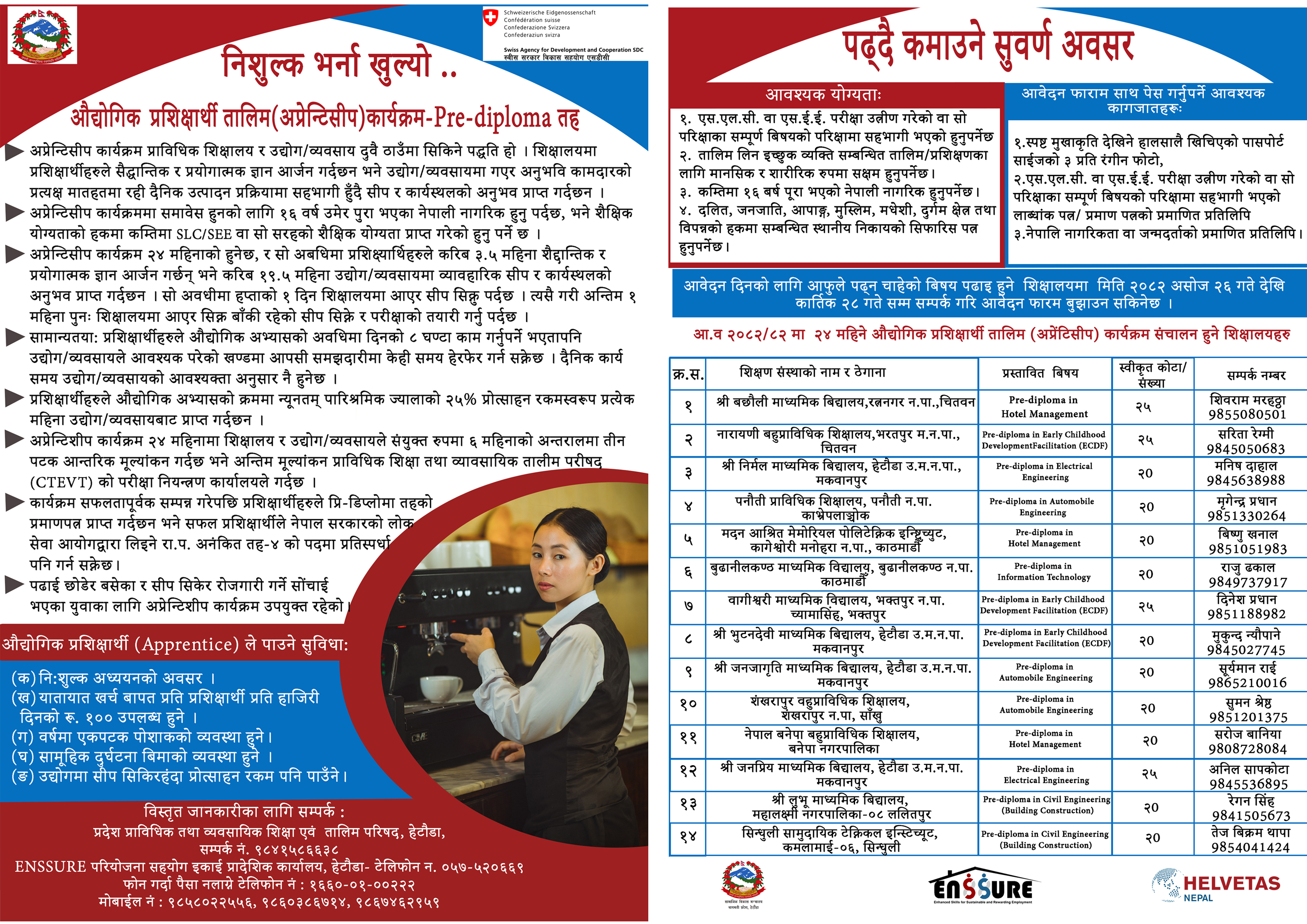» सामाजिक विकास मन्त्रालयबाट प्रकाशित औद्योगिक प्रशिक्षार्थी तालिम सम्बन्धी सूचना सम्प्रेषण सम्बन्धमा ।