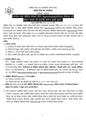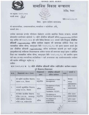 सामाजिक विकास मन्त्रालयबाट प्रकाशित औद्योगिक प्रशिक्षार्थी तालिम सम्बन्धी सूचना सम्प्रेषण सम्बन्धमा ।