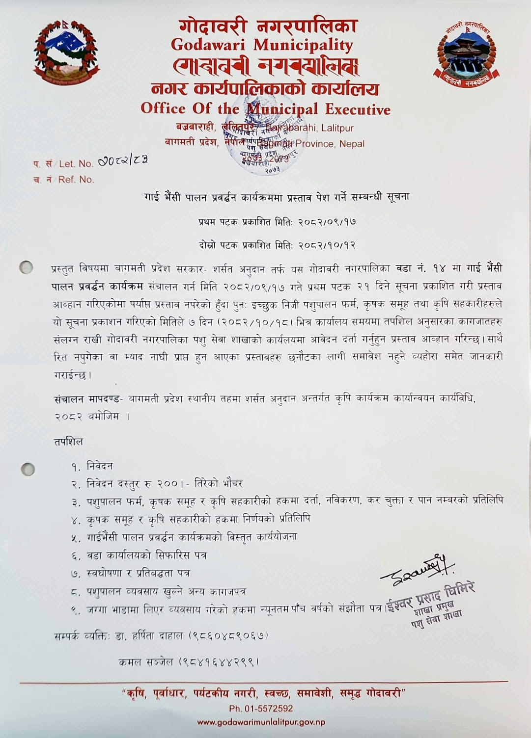गाई भैंसी पालन प्रवर्द्धन कार्यक्रममा प्रस्ताव पेश गर्ने सम्बन्धी सूचना
