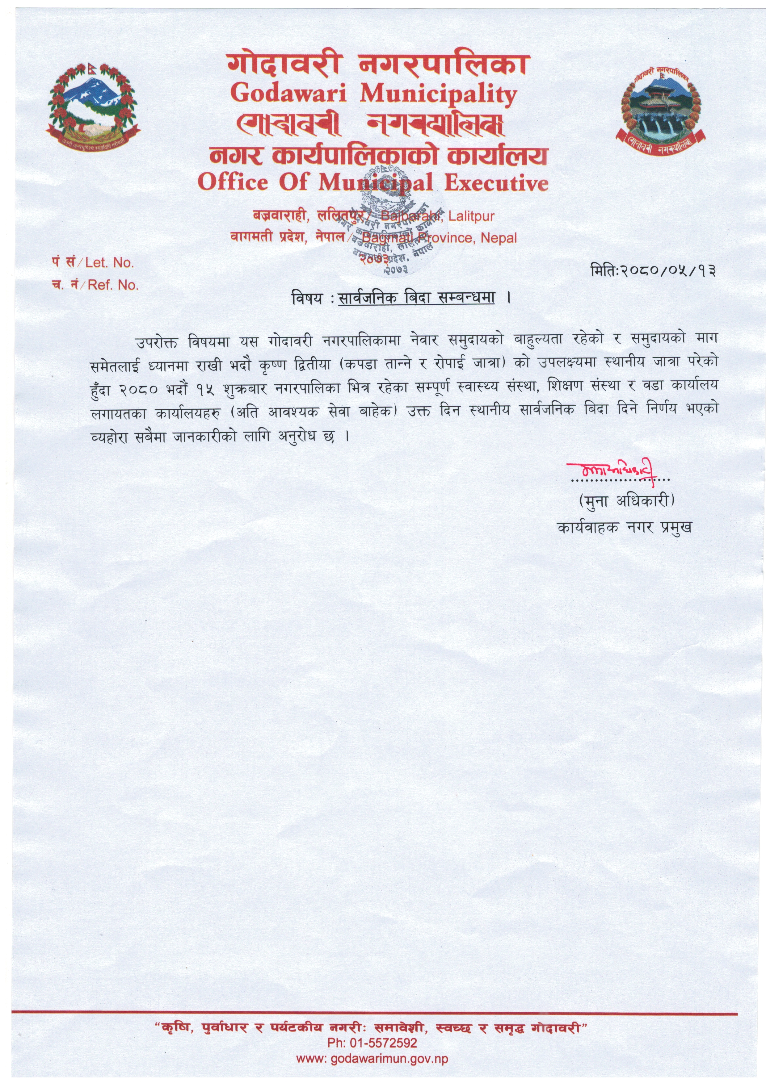 राष्ट्रिय व्यापी खुल्ला हाफ म्याराथन (२१ कि.मी),गोदावरी नगरपालिका अन्तर विद्यालय व्यापी पुरुष म्याराथन (१० कि.मी)र गोदावरी नगरपालिका अन्तर विद्यालय व्यापी महिला म्याराथन (५ कि.मी) सम्बन्धी सूचना।