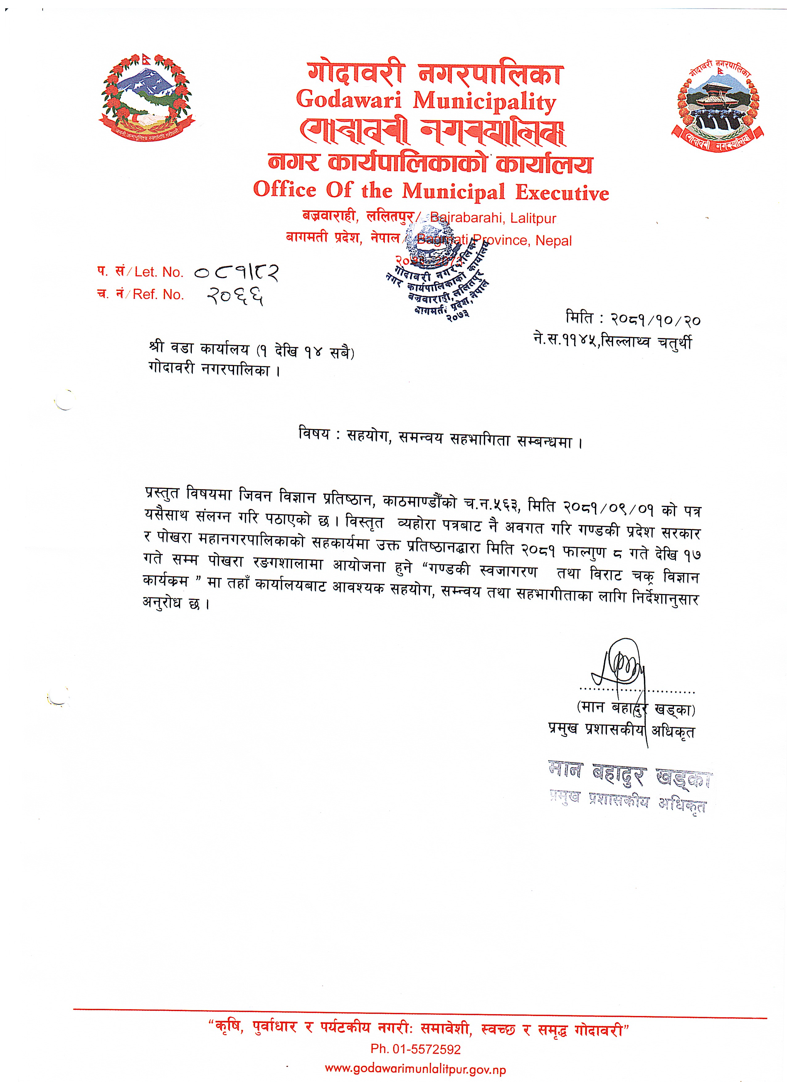 गोदावरी नगरपालिका अन्तर्गत वडा नं. १२, ठेचोस्थित गोदावरी नगरपालिका अस्पतालको ब्लक–बी भवन निर्माण सम्बन्धी आर्थिक प्रस्ताव खोल्ने बारे सूचना।