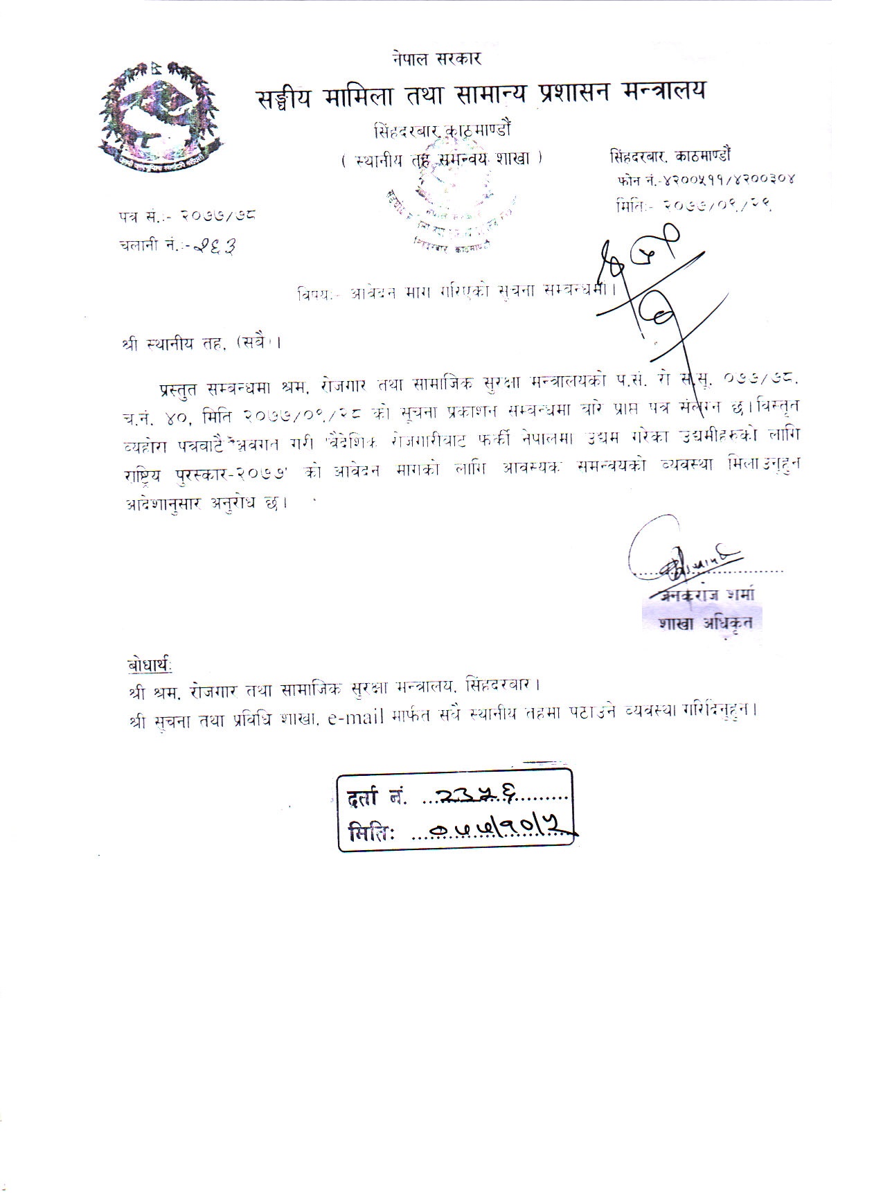 » आबेदन माग गरिएको सूचना सम्बन्धमा