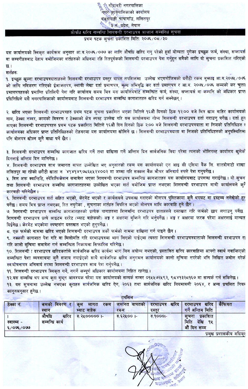 औषधि खरिद सम्बन्धि सिलबन्दी दरभाउपत्र आहवान सम्बन्धि सूचना
