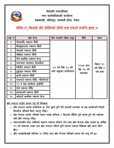 » कोभिड १९ बिरुद्ध खोप भेरोसिलको पहिलो मात्रा लगाउने सम्बन्धी सूचना
