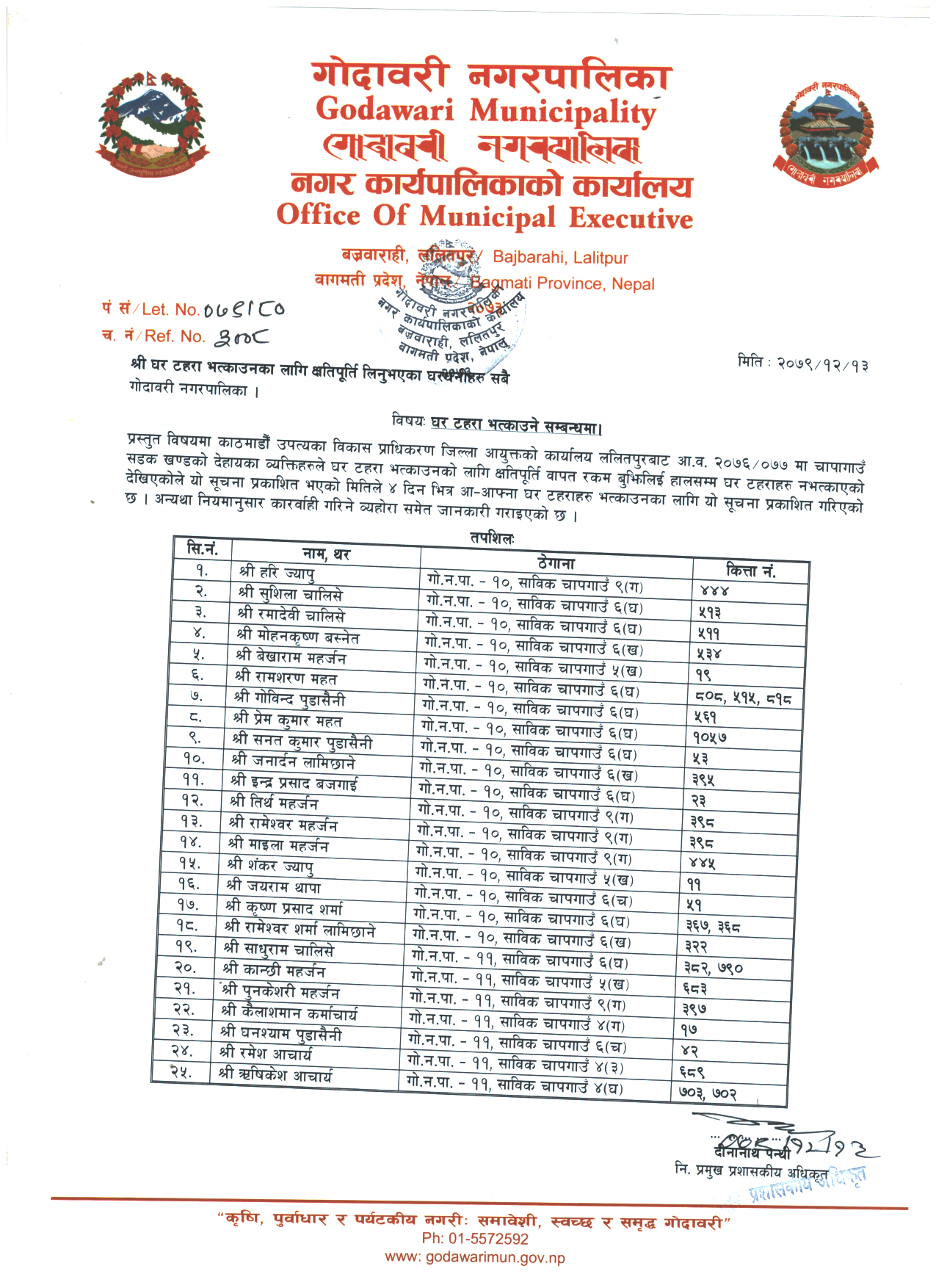 घर टहरा भत्काउने सम्बन्धी सूचना।