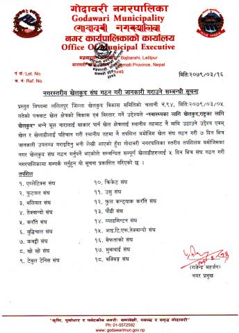 नगरस्तरीय खेलकुद संघ गठन गरी जानकारी गराउने सम्बन्धि सूचना