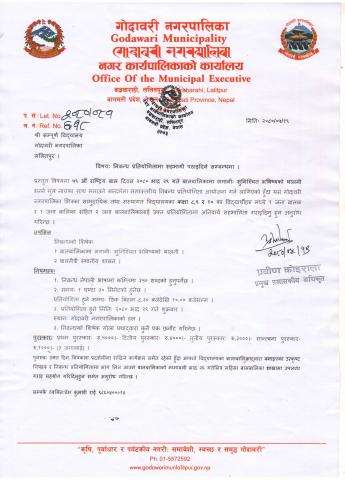 गोदावरी नगरपालिका अन्तर्गत वडा नं. १२, ठेचोस्थित गोदावरी नगरपालिका अस्पतालको ब्लक–बी भवन निर्माण सम्बन्धी आर्थिक प्रस्ताव खोल्ने बारे सूचना।