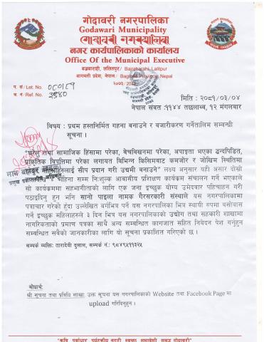 » प्रथम हस्तनिर्मित गहना वनाउने बजारीकरण गर्नेतालिम सम्बन्धी सूचना।