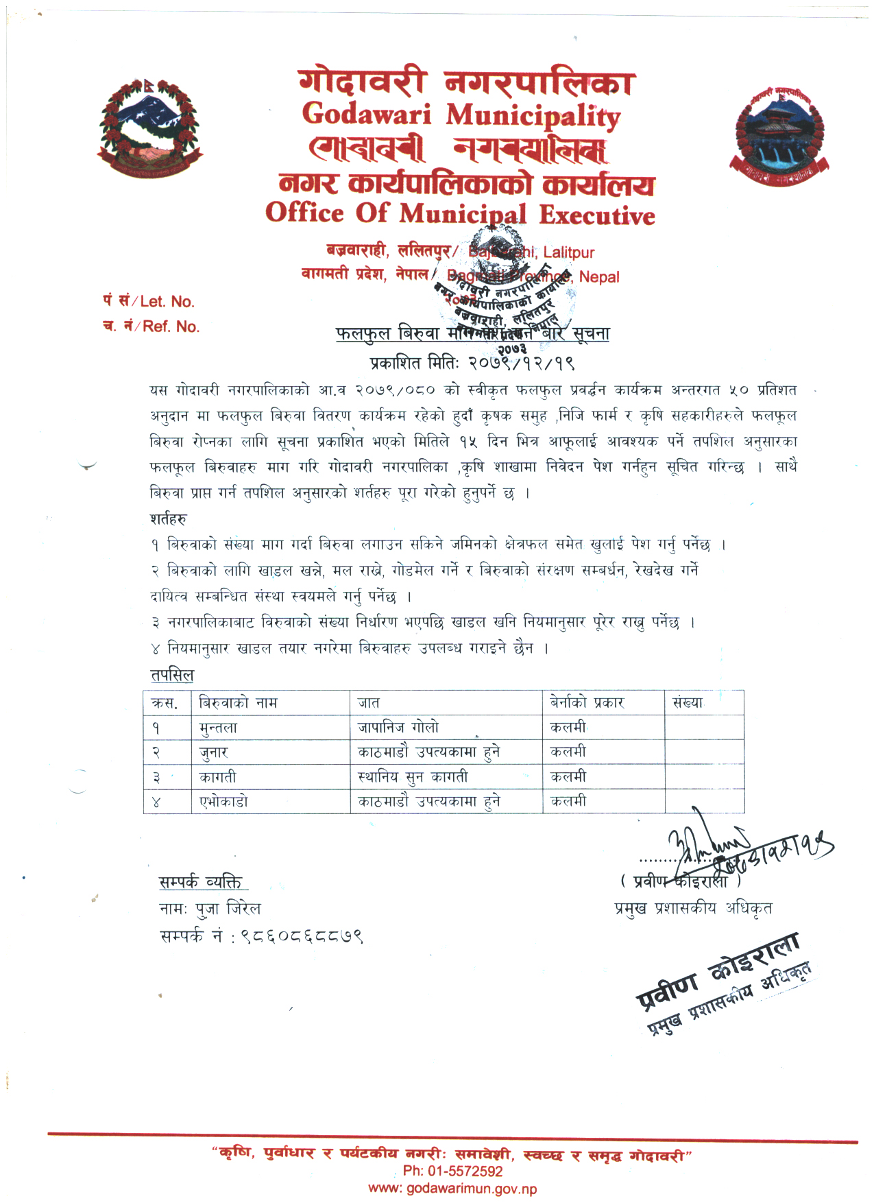 फलफुल बिरुवा माग पेश गर्ने बारे।
