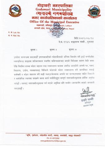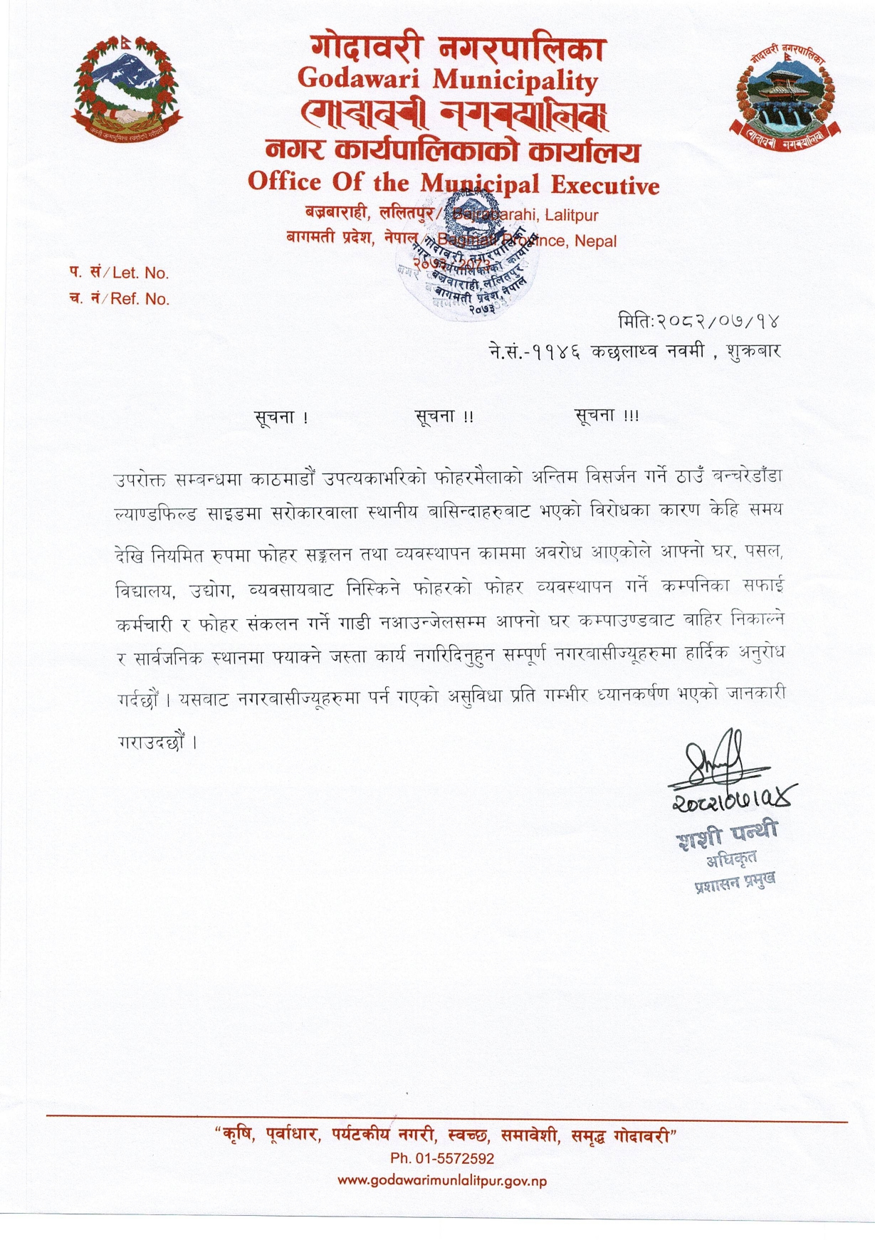 फोहर व्यवस्थापन सम्बन्धी सूचना।