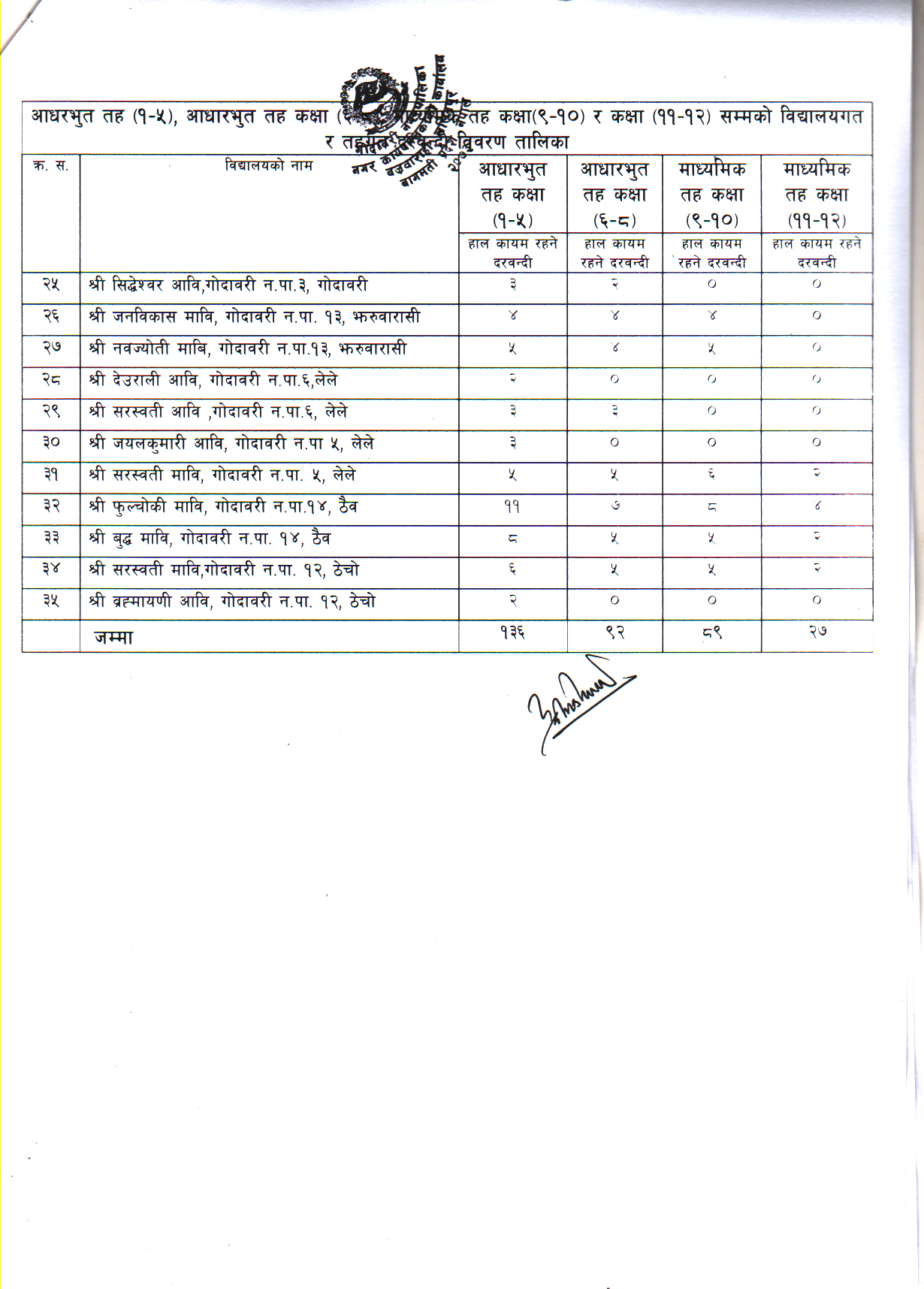» बिद्यालयगत तथा तहगत दरबन्दी कायम गरिएको सम्बन्धमा