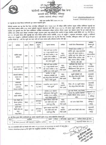 गोदावरी नगरपालिका-११, ललितपुरमा स्थित चापागाउँ तरकारी बजारमा भाडामा लिन सकिने पसल र सार्वजनिक शौचालय निर्माण कार्यका लागि रु ७,८०९,२०५.८३/- रकमको बोलपत्र स्वीकृत गर्ने आशयको सूचना।
