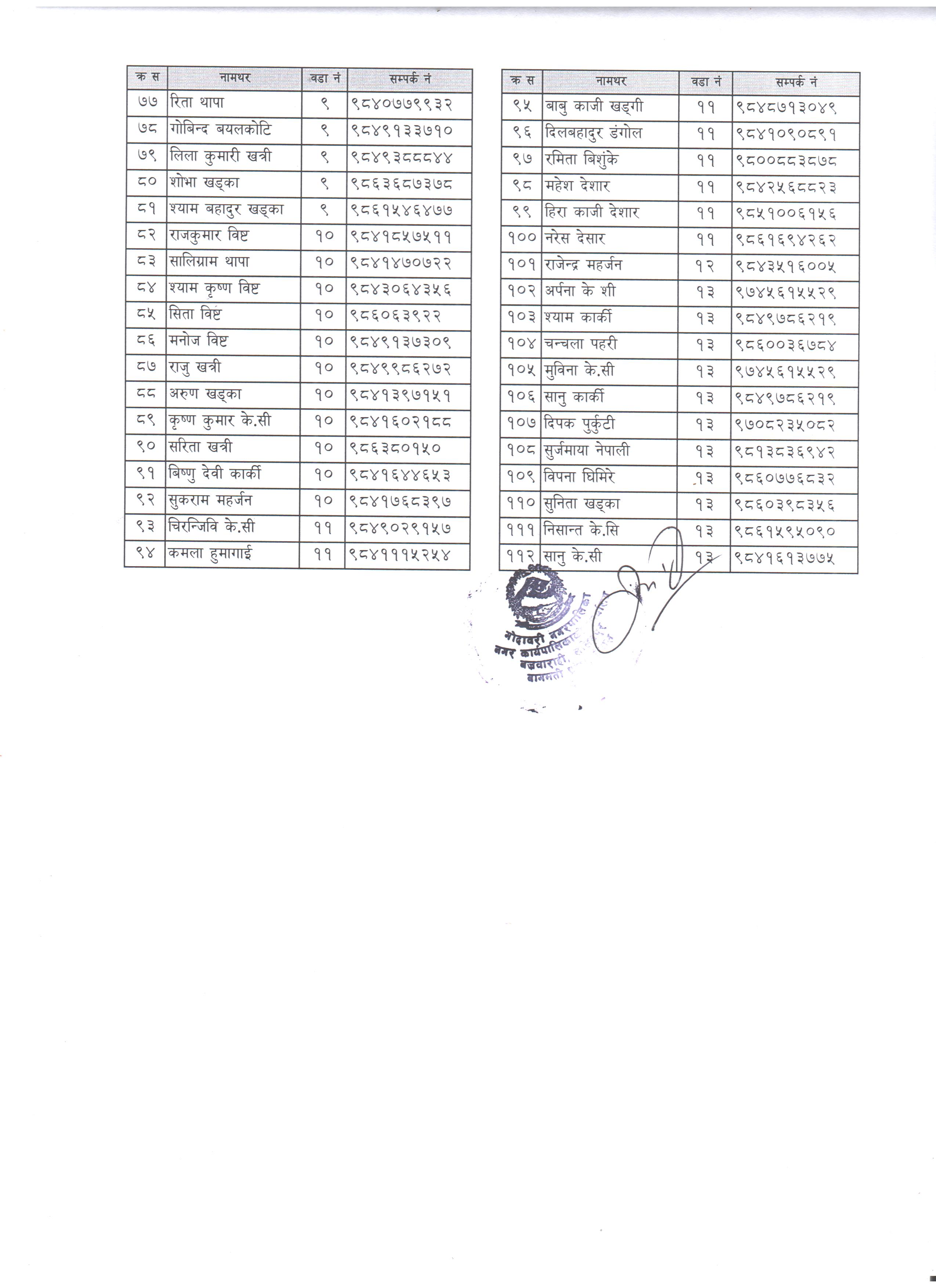गोदावरी नगरपालिका वडा नं–०२, ललितपुरस्थित देविस्थान खाल्डे खानेपानी आयोजना सम्बन्धि बोलपत्र स्वीकृत गर्ने आशयको सूचना।