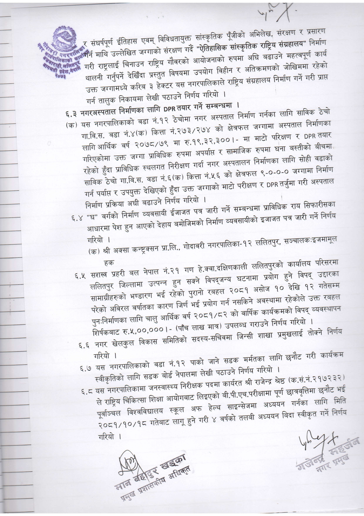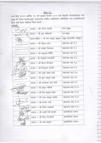 मिति २०८१/१२/११ गतेको कार्यपालिका बैठक निर्णय