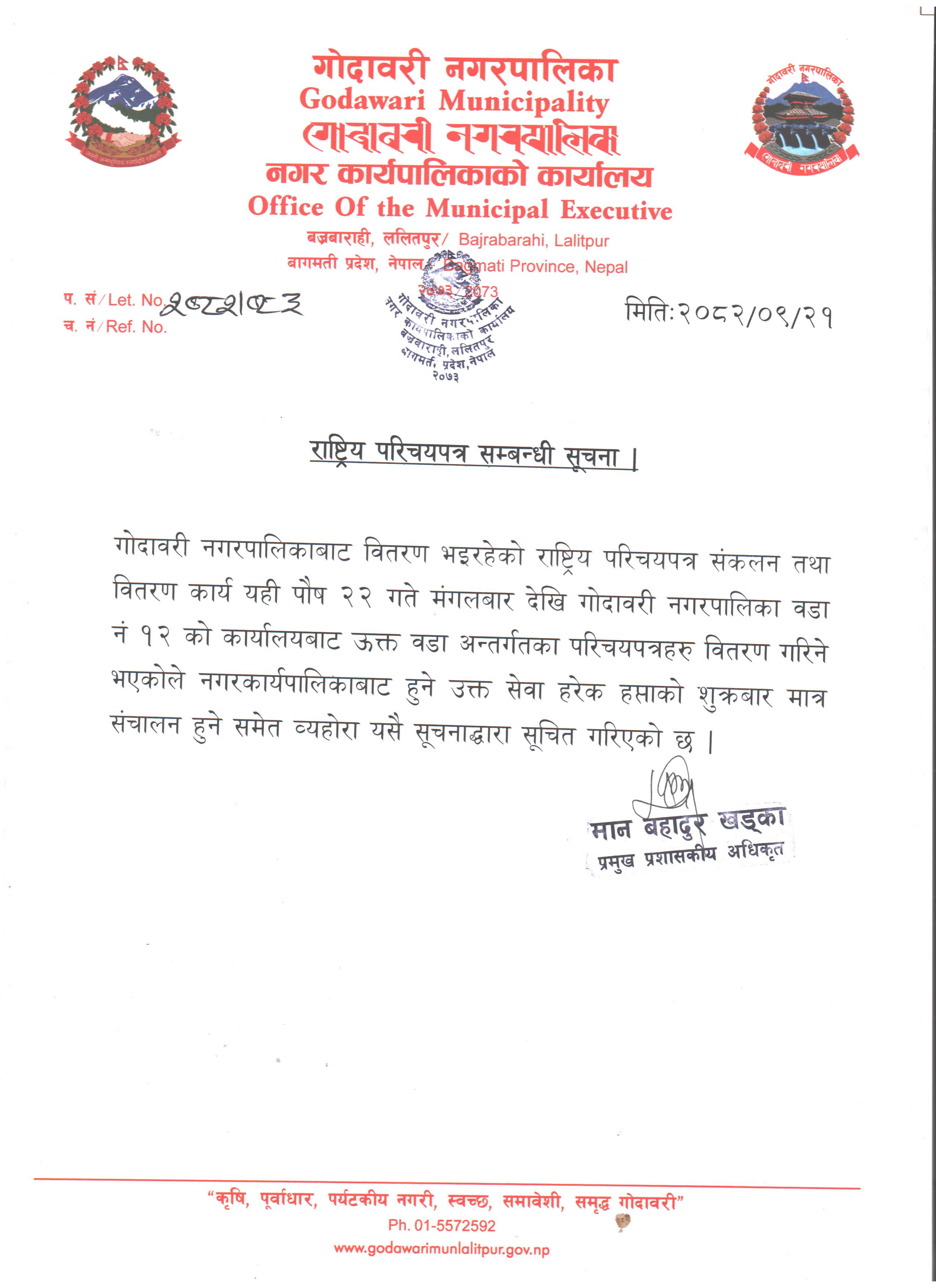 » राष्ट्रिय परिचयपत्र सम्बन्धी सूचना।