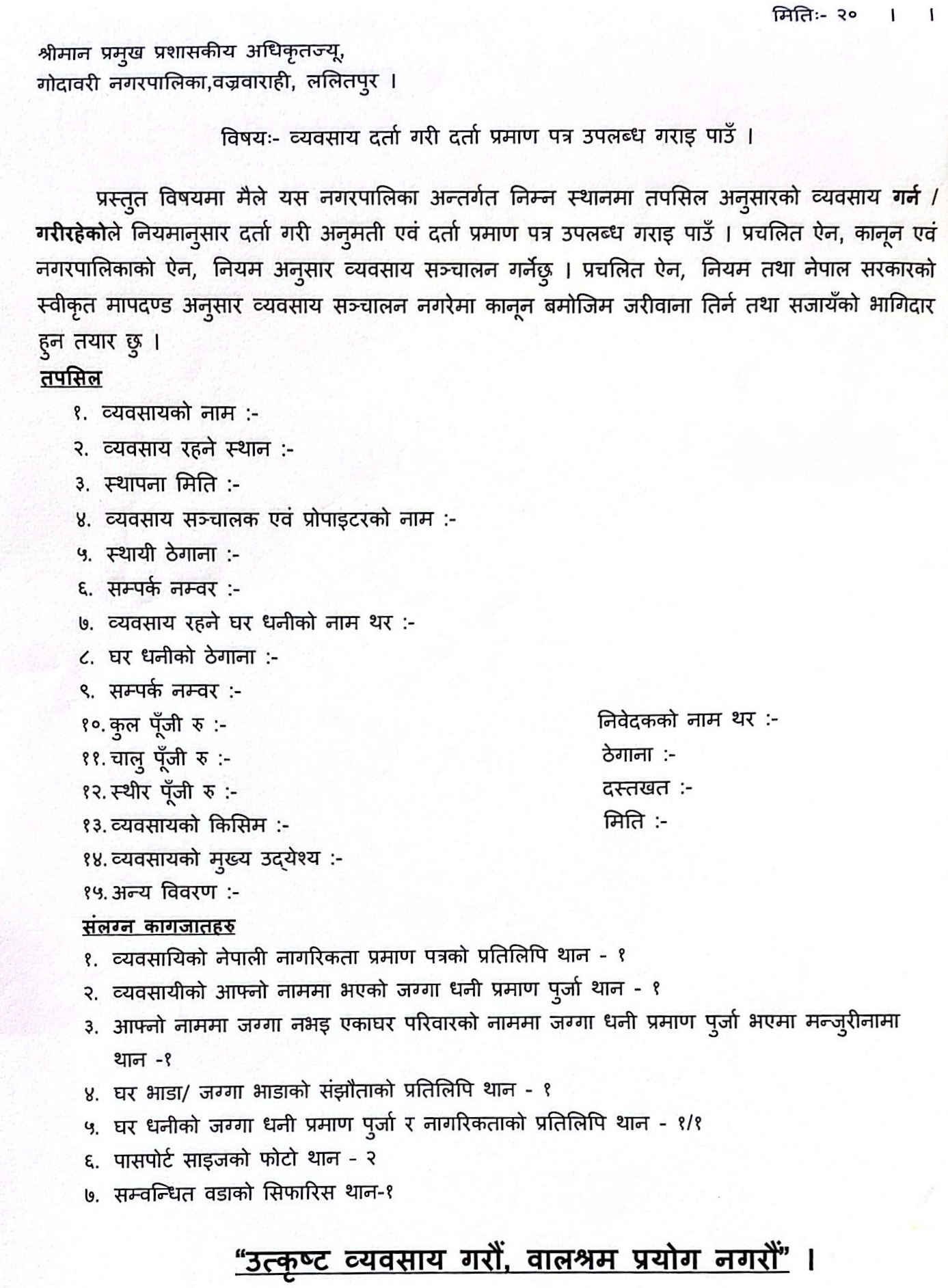 व्यवसाय दर्ता तथा बन्द फारम सम्बन्धमा