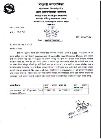 बोलपत्र स्वीकृत गर्ने आश्यको सूचना .