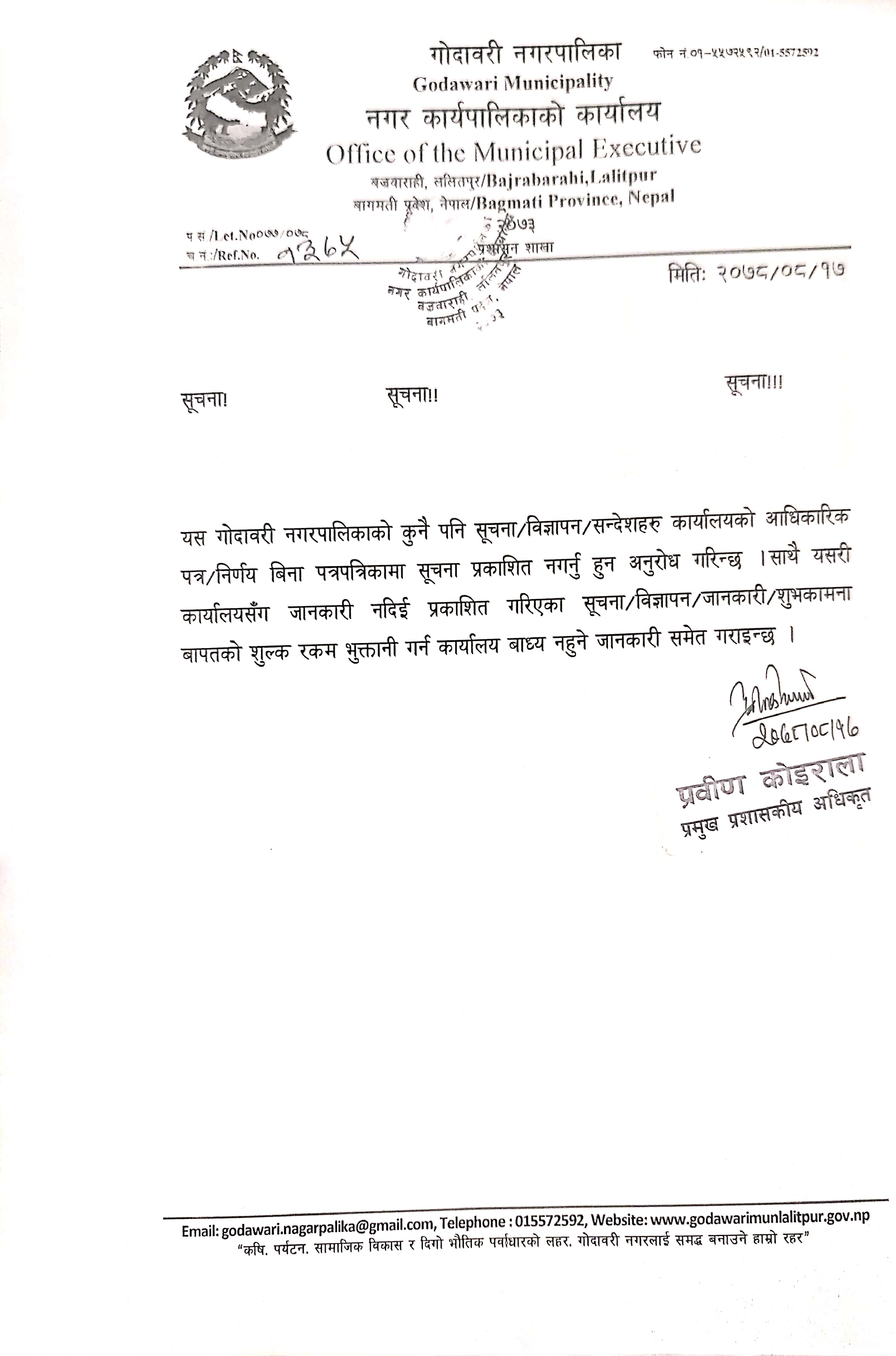 राष्ट्रिय व्यापी खुल्ला हाफ म्याराथन (२१ कि.मी),गोदावरी नगरपालिका अन्तर विद्यालय व्यापी पुरुष म्याराथन (१० कि.मी)र गोदावरी नगरपालिका अन्तर विद्यालय व्यापी महिला म्याराथन (५ कि.मी) सम्बन्धी सूचना।
