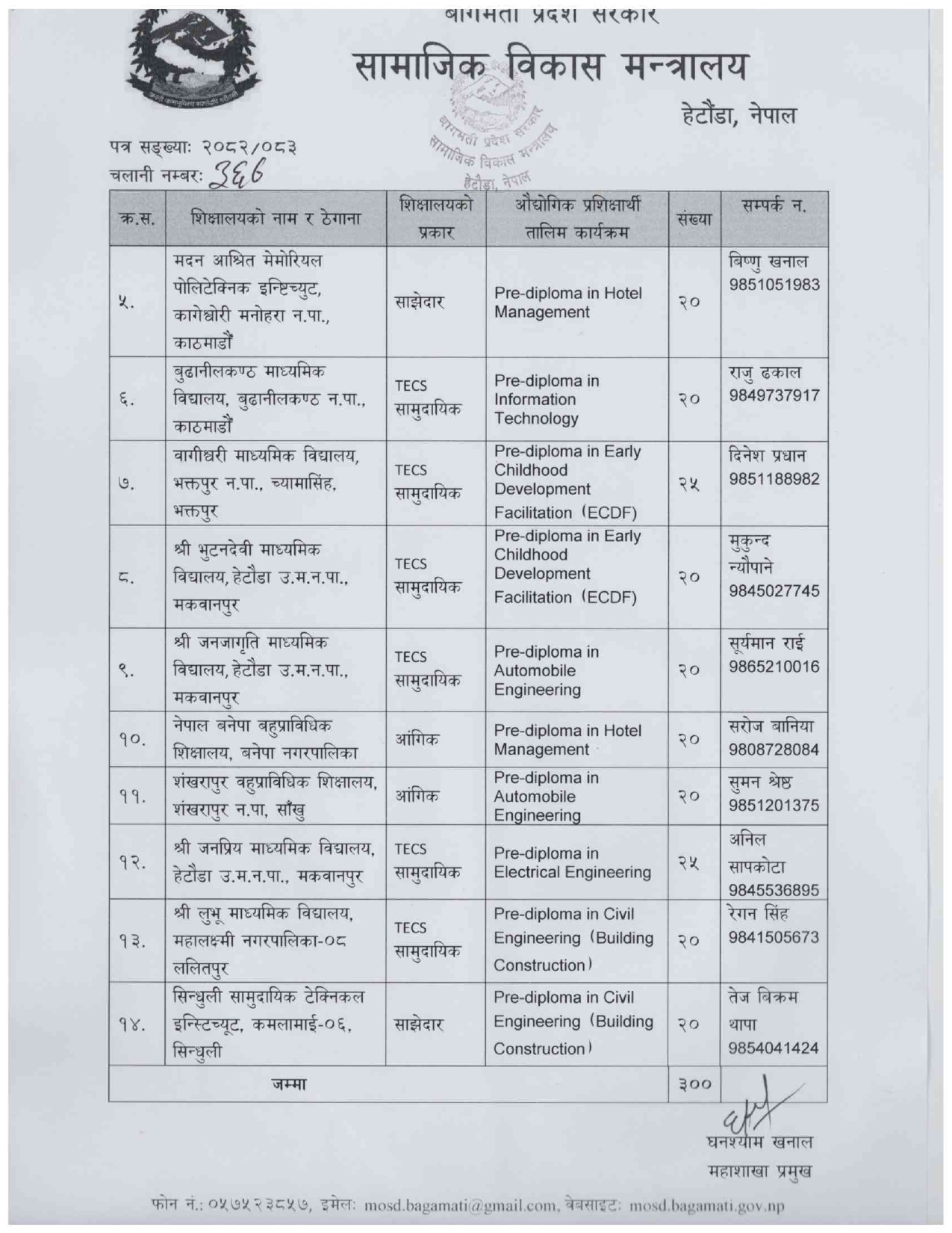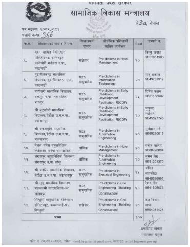 » सामाजिक विकास मन्त्रालयबाट प्रकाशित औद्योगिक प्रशिक्षार्थी तालिम सम्बन्धी सूचना सम्प्रेषण सम्बन्धमा ।