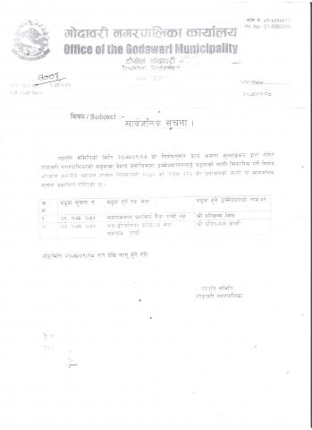 बोलपत्र स्वीकृत गर्ने आश्यको सूचना .