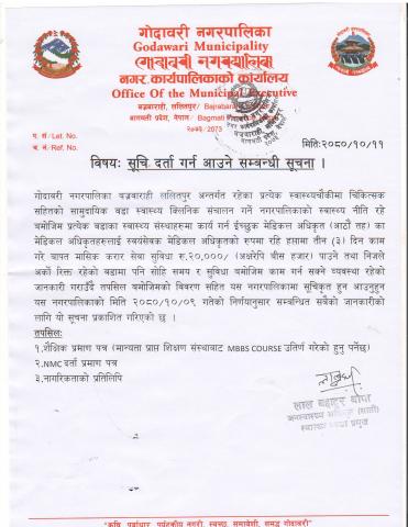राष्ट्रिय व्यापी खुल्ला हाफ म्याराथन (२१ कि.मी),गोदावरी नगरपालिका अन्तर विद्यालय व्यापी पुरुष म्याराथन (१० कि.मी)र गोदावरी नगरपालिका अन्तर विद्यालय व्यापी महिला म्याराथन (५ कि.मी) सम्बन्धी सूचना।