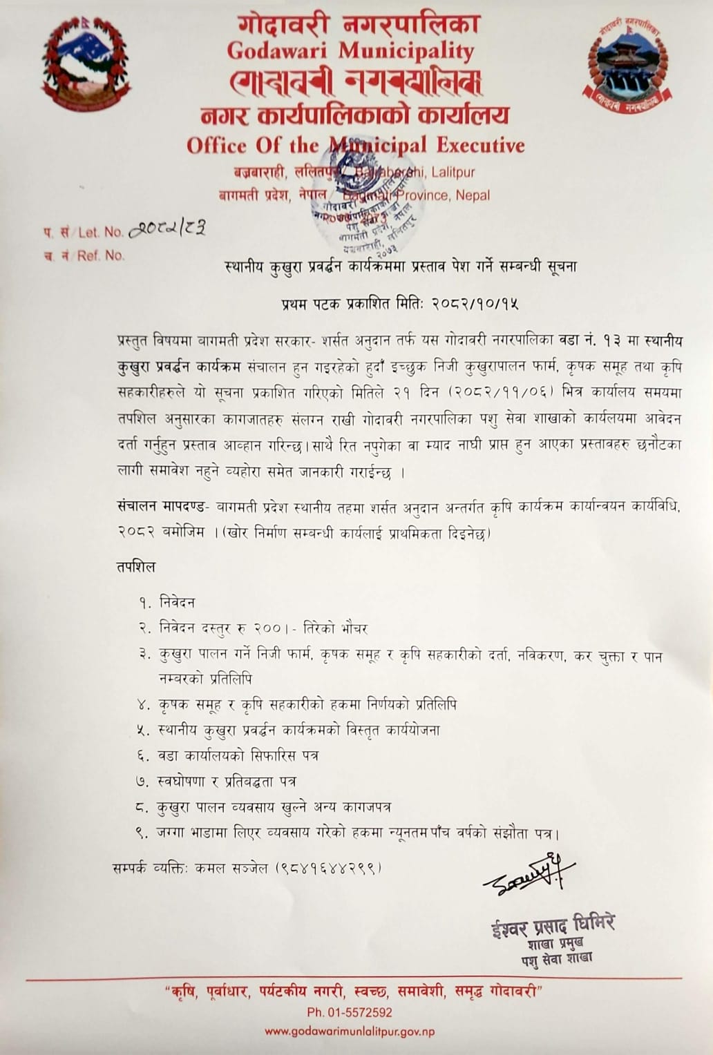 » स्थानीय कुखुरा प्रवर्द्धन कार्यक्रममा प्रस्ताव पेश गर्ने सम्बन्धी सूचना।