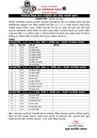 » स्वयंसेवक शिक्षक करार पदपूर्तिको लागि परीक्षा सम्बन्धी सूचना।