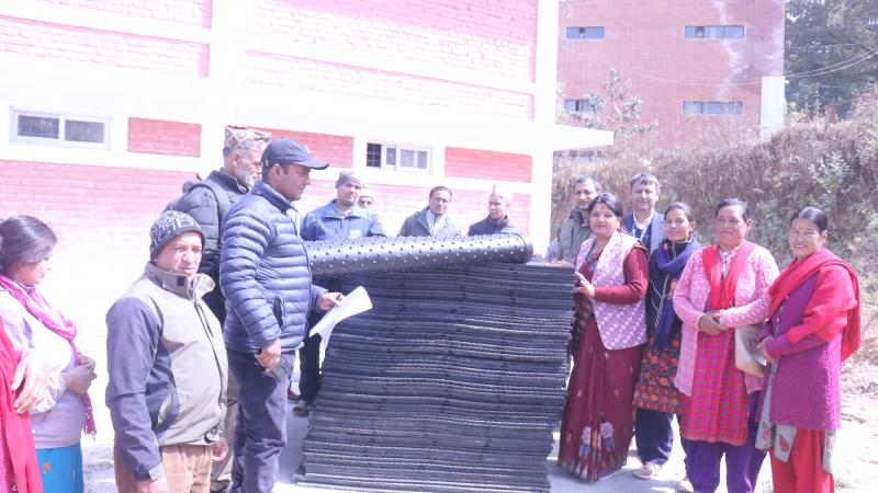 गोदावरी नगरपालिका पशु शाखाको आयोजनामा नगर उपप्रमुख श्री मुना अधिकारीज्यूबाट ५० प्रतिशत लागत अनुदानमा काउ म्याट वितरण कार्यक्रम गर्नु हुदै।