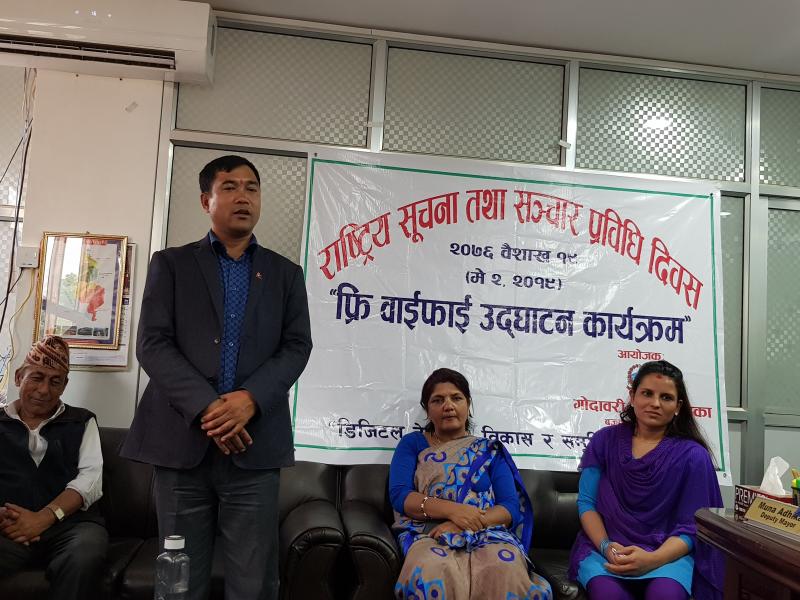 राष्ट्रिय सुचना तथा सञ्चार प्रविधि दिवसका अवसरमा गोदावरी नगरपालिकाद्धारा नगर प्रमुख गजेन्द्र महर्जनको अध्यक्षतामा फ्रि वाईफाईको सुबिधाको सुरुवात गर्दै मनायो